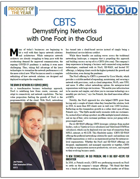 Joe Putnik, chief innovation officer at CBTS, recently sat down with CIO Review to discuss new advances and developments in NaaS, which won CIO Review’s Product of the Year award.